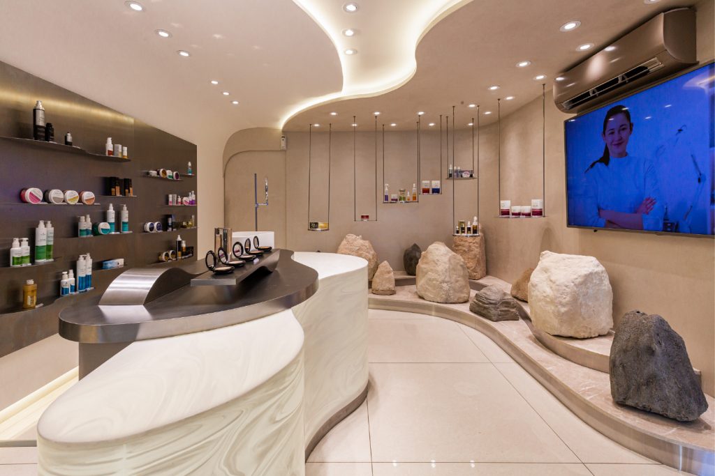O showroom foi concebido para englobar três espaços complementares, que se diferenciam pela exposição de produtos e pela possibilidade de experimentação. A seleção de materiais e texturas estabelece um contraste harmonioso entre tecnologia e elementos naturais. A bancada central, destinada à experimentação, constitui o eixo principal que orienta toda a jornada do cliente.